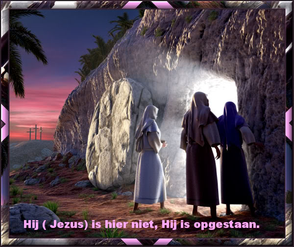 De duivel heeft het zover gekregen dat Jezus stierf! Dat leek misschien een overwinning. Wat hij niet wist, was dat hij daarmee een instrument in Gods hand was, waardoor nu een ieder die in het Volbrachte werk gelooft, het eeuwige leven krijgt! Want Jezus Christus stond op uit de dood: Hij leeft! Zo vinden we in Hand. 2 : 31: “Zo heeft hij, dit voorziende, gesproken van de opstanding van Christus, dat Zijn ziel niet is verlaten in de hel, noch Zijn vlees verderving heeft gezien”. De Heere Jezus is zelfs voor ons ter helle afgedaald! Hij heeft onze zonden gebracht op de plaats waar ze behoren te zijn. En Hij heeft overwonnen, want het graf is opengegaan! Vrouwen kwamen Zijn graf opzoeken. En zij kregen van de Engel te horen: “…ik weet, dat gij zoekt Jezus, Die gekruisigd was. Hij is hier niet; want Hij is opgestaan, gelijk Hij gezegd heeft…” (Matth. 28 : 5b, 6a). Hij leeft!